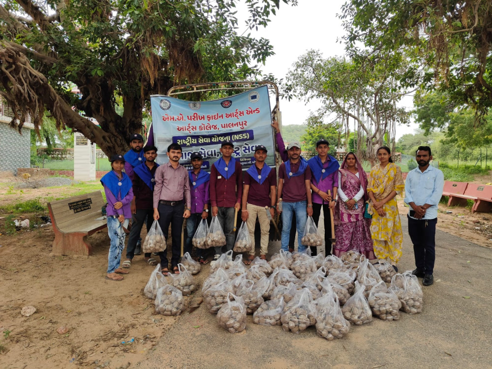 Under the management of Banaskantha District Kelavani Mandal, M.A. Parikh Fine Arts and Arts College, Palanpur, organized a tree plantation program in the village of Khemana near Palanpur through the NSS (National Service Scheme) unit. Environment-loving NSS volunteers actively participated in this initiative. Present at the event were Nanakdas Sadhu, village Sarpanch Daljibhai Chaudhary, school principal Piyushbhai Prajapati, and college staff member Shravankumar Kharani. They took special responsibility for the care and maintenance of the planted trees. The event was conducted under the guidance of the college principal, Dr. Rameshkumar B. Patel, and coordinated by NSS Program Officers Dr. Ganpatbhai K. Chaudhary and Dr. Khushbuben K. Chaudhary.