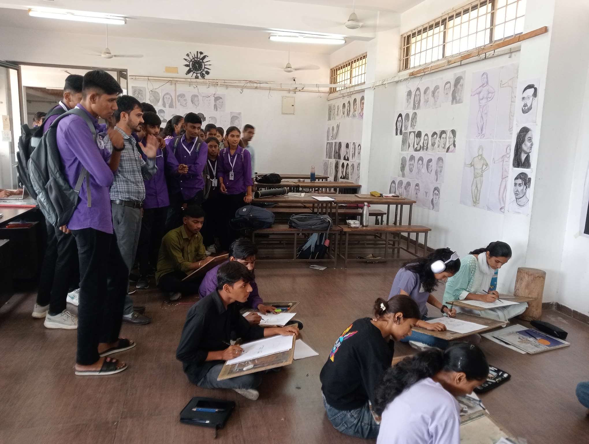 બનાસકાંઠા ડિસ્ટ્રિક્ટ કેળવણી મંડળ સંચાલિત એમ.એ.પરીખ ફાઈન આર્ટ્સ એન્ડ આર્ટ્સ કૉલેજમાં તારીખ:- ૦૨/૦૮/૨૦૨૫ ના રોજ ૧૦ વાગે F.Y ગુજરાતી વિભાગના ૫૪ વિદ્યાર્થીઓએ કલાભવનની મુલાકાત લીધી હતી. જેમાં ચિત્રકલા વિભાગમાં વિદ્યાર્થીઓના બનાવેલા ચિત્રોને આંતર ભાવથી નિહાળ્યા ચિત્ર વિભાગના પ્રોફેસર નરેન્દ્રભાઈ પટેલ અને બૈશાખીબેન પટેલે જુદા જુદા ચિત્રો વિશે માહિતગાર કર્યા તેમજ સંગીત વિભાગમાં રજતભાઈ મહેતા અને તેમના વિદ્યાર્થીઓએ ગીતો ગાઈને અને સંગીતનું જીવનમાં કેટલું મહત્વ છે તે વિશે વિદ્યાર્થીઓને ઉત્સાહિત કર્યા હતા.અંતમાં સંગીત અને ચિત્રકલા સર્ટિફિકેટ કોર્સ વિશે માહિતી આપવામાં આવી હતી. આ કોર્સ વિદ્યાર્થીઓને ઉપયોગી નીવડે જેવા વિષયોને આવરી લઈને આ સમગ્ર કાર્યક્રમ કોલેજના આચાર્યશ્રી ડૉ.રમેશકુમાર બી. પટેલના માર્ગદર્શન હેઠળ કરવામાં આવ્યો હતો. જેનું આયોજન ગુજરાતી વિભાગના પ્રોફેસર ડૉ.ગણપતભાઈ ચૌધરી અને ડૉ.આકૃતિબેન પંચાલે કર્યું હતું.